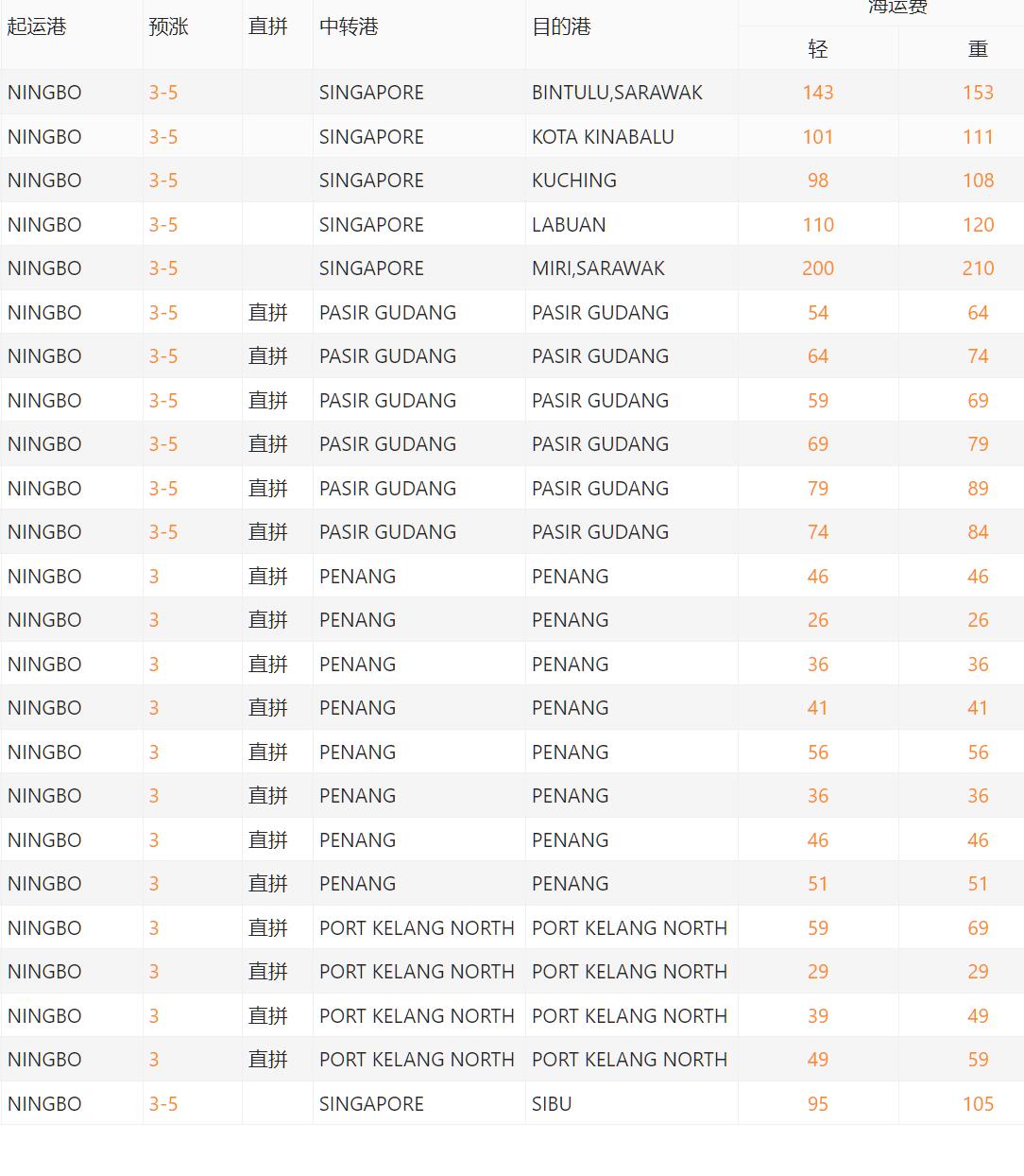 馬來西亞海運費
