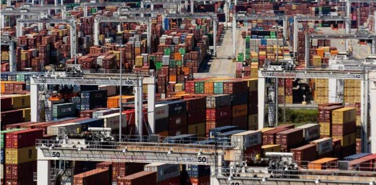 這是美國最繁忙的貿(mào)易門戶之一,薩凡納港的集裝箱就像五彩繽紛的孩子們堆在一起,一眼就看不見了。